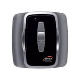 Fjernbetjeningen sidder i en vægholder og kan anvendes både når den sidder i holderen og den kan tages med over til der, hvor du sidder, så du nemt og enkelt kan styre din terrassevarmer
