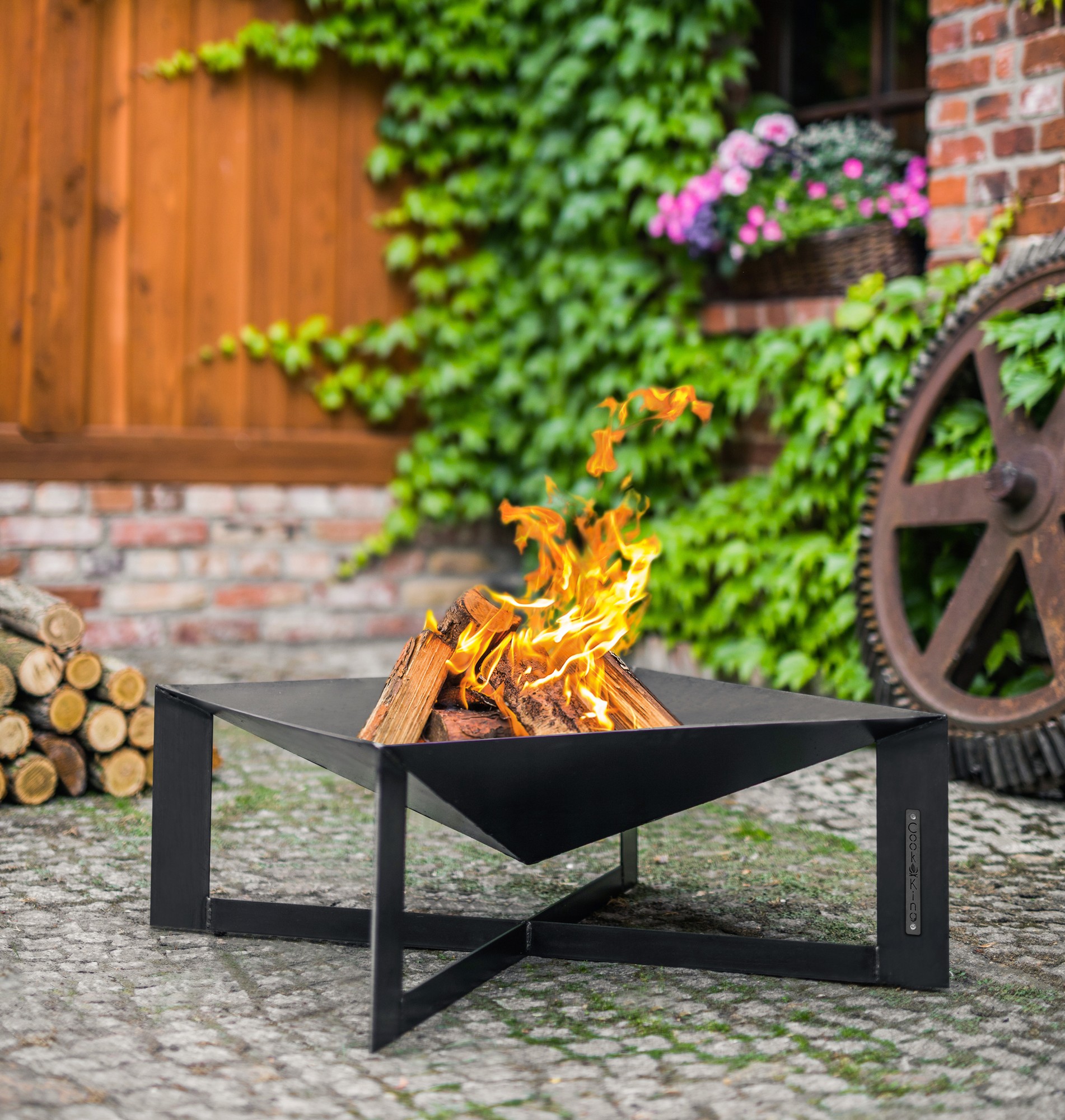 CUBA – Kvadratisk håndlavet bålfad i kraftigt stål 70 cm.