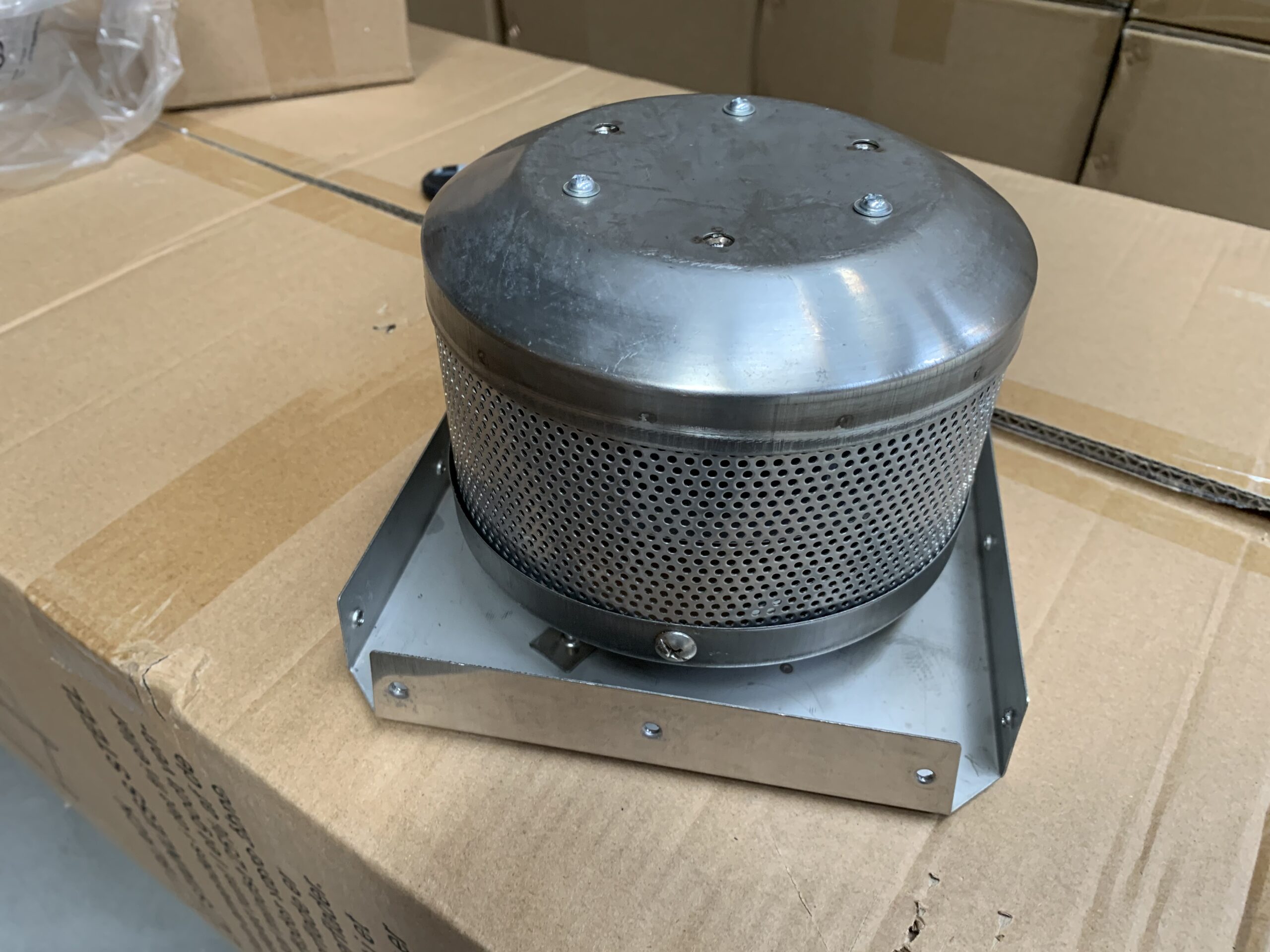 Topbeslag og gitter hvor henholdsvis glasrør og reflektor er påmonteret. (toppen af terrassevarmeren)