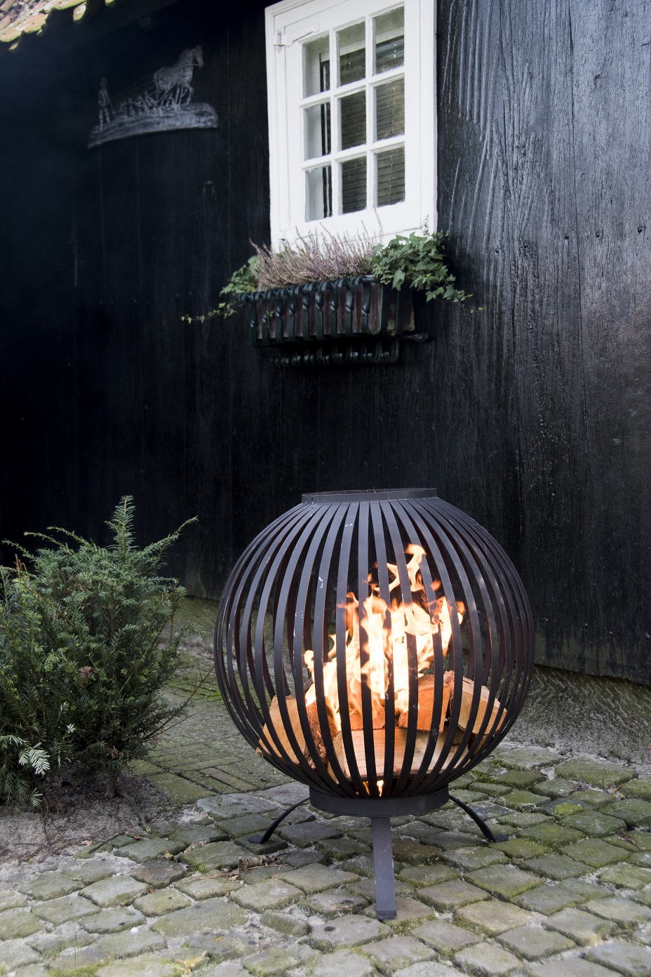 Bålkurven udgør en fin dekoration i uderummet, også når den er slukket.