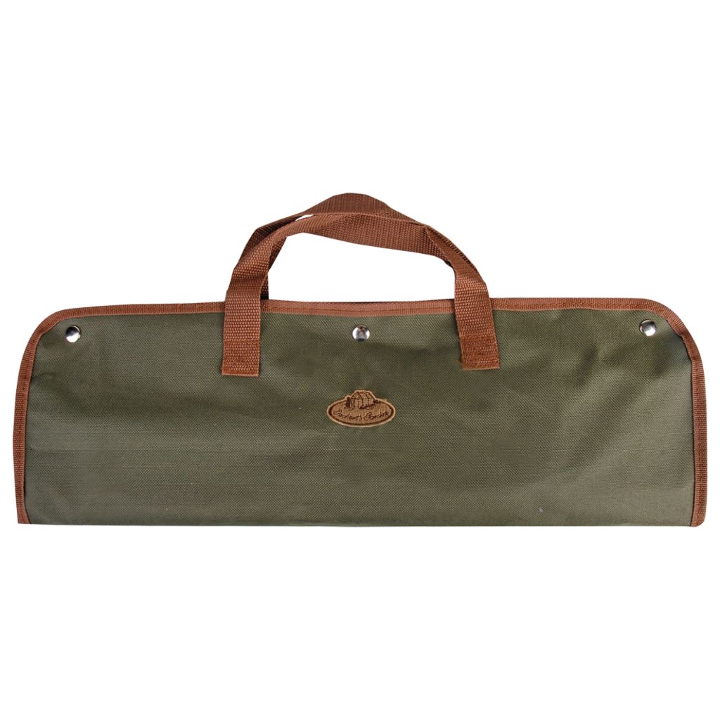 Sættet består af: taske og 4-delt rustfrit stålværktøj (grilltang, grillgaffel, spatel med flaskeåbner og BBQ-børste).