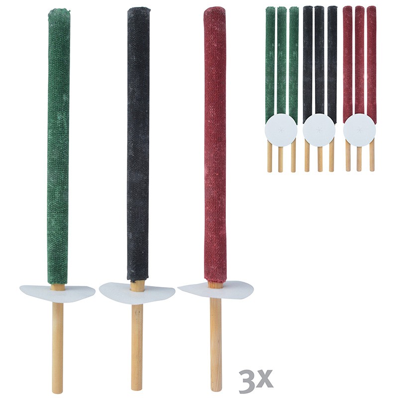 En pakke indeholder 3 fakler i enten sort, rød eller grøn.