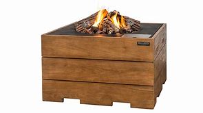 Happy Cocooning firkantet loungebord med pejs i teaktræ med sort top.