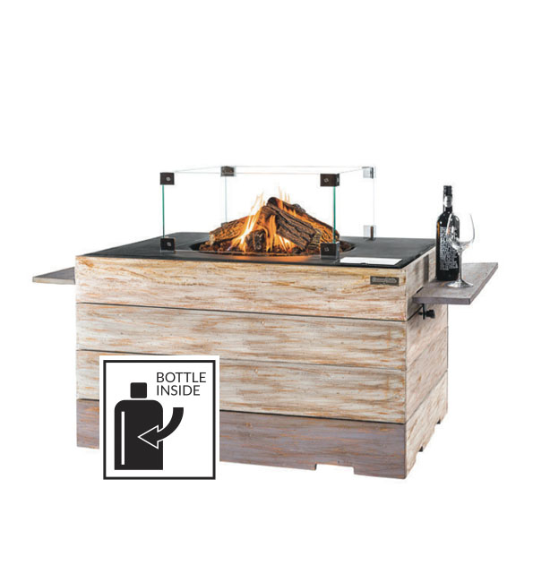 Happy Cocooning Nice & Nasty rektangulært dining loungebord med pejs i teaktræ, grå top.