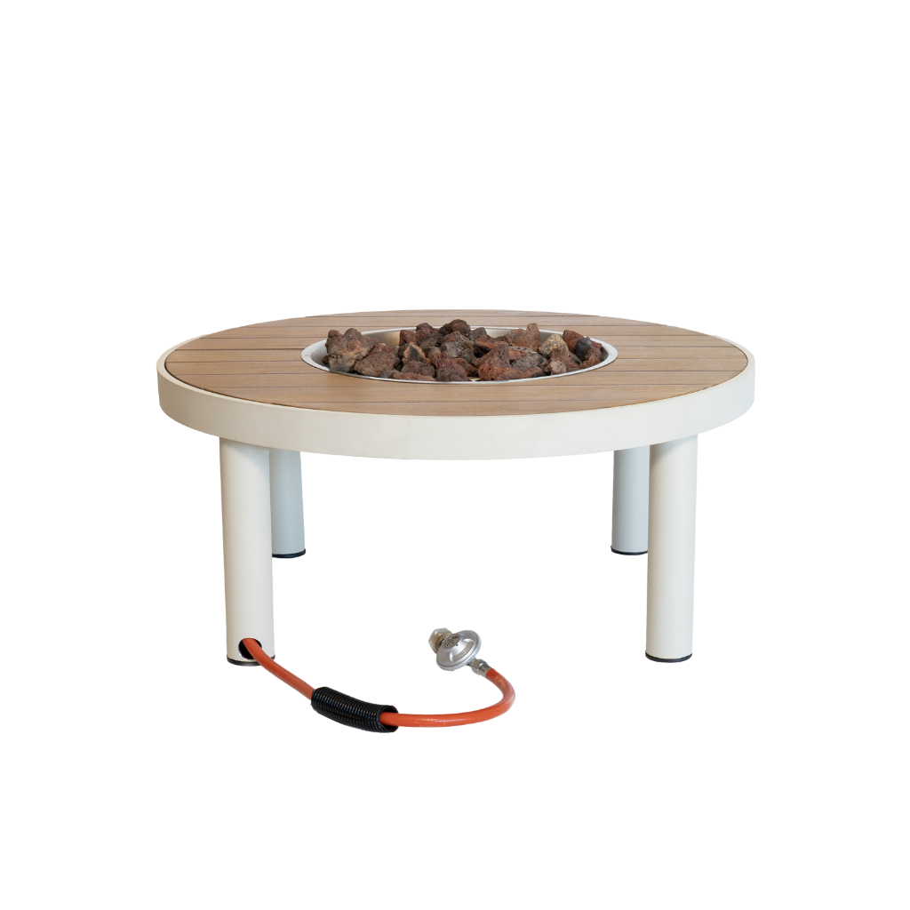 Bordet kan erstatte et traditionelt havebord, så det er oplagt at byde sine gæster velkommen rundt om dette smarte og hyggelige ildbord med et glas køligt hvidvin.