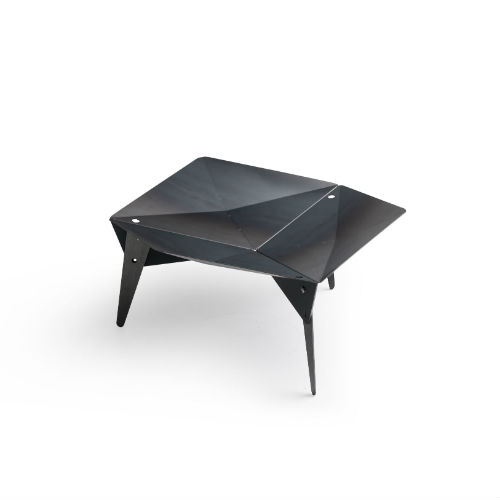 Fødderne kan, efter montering, slås ud og ind, som du ønsker det. Når de er slået ud, løftes bålfadet med 20 cm.