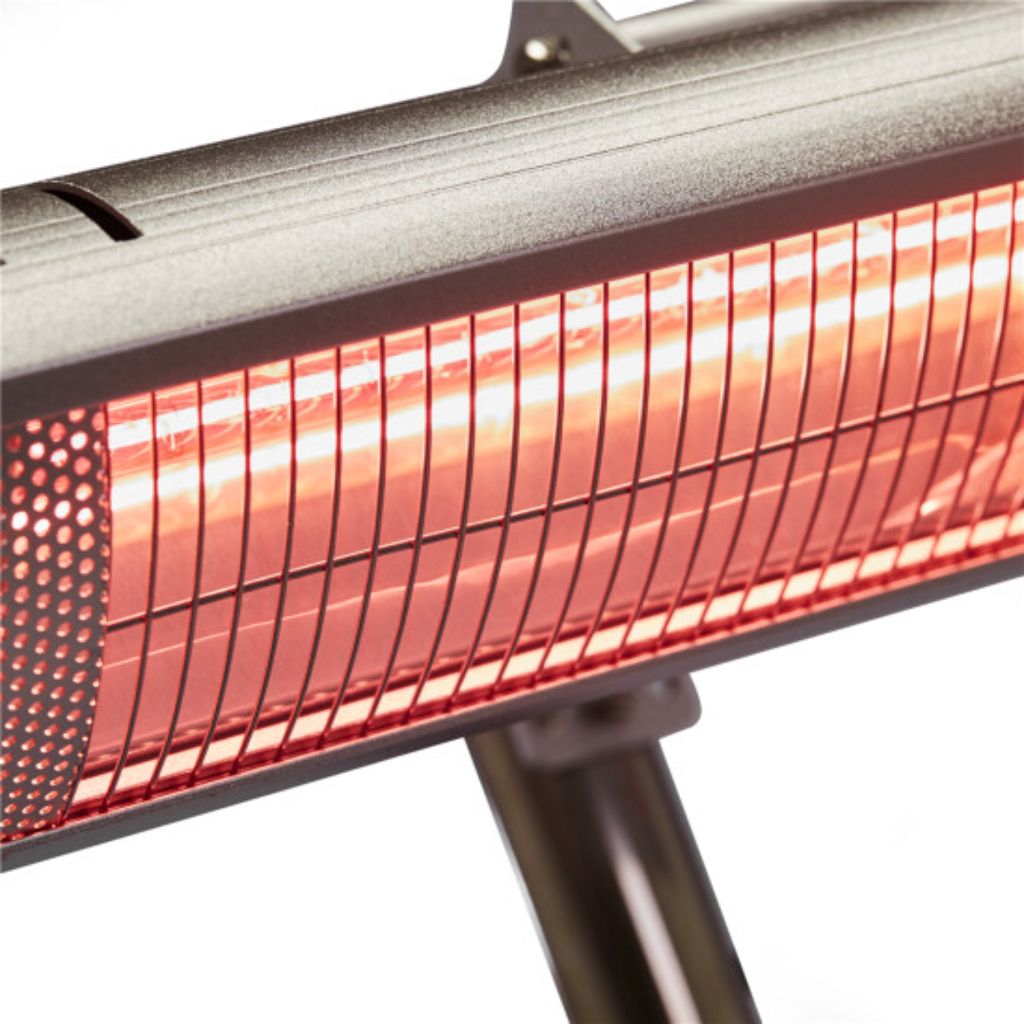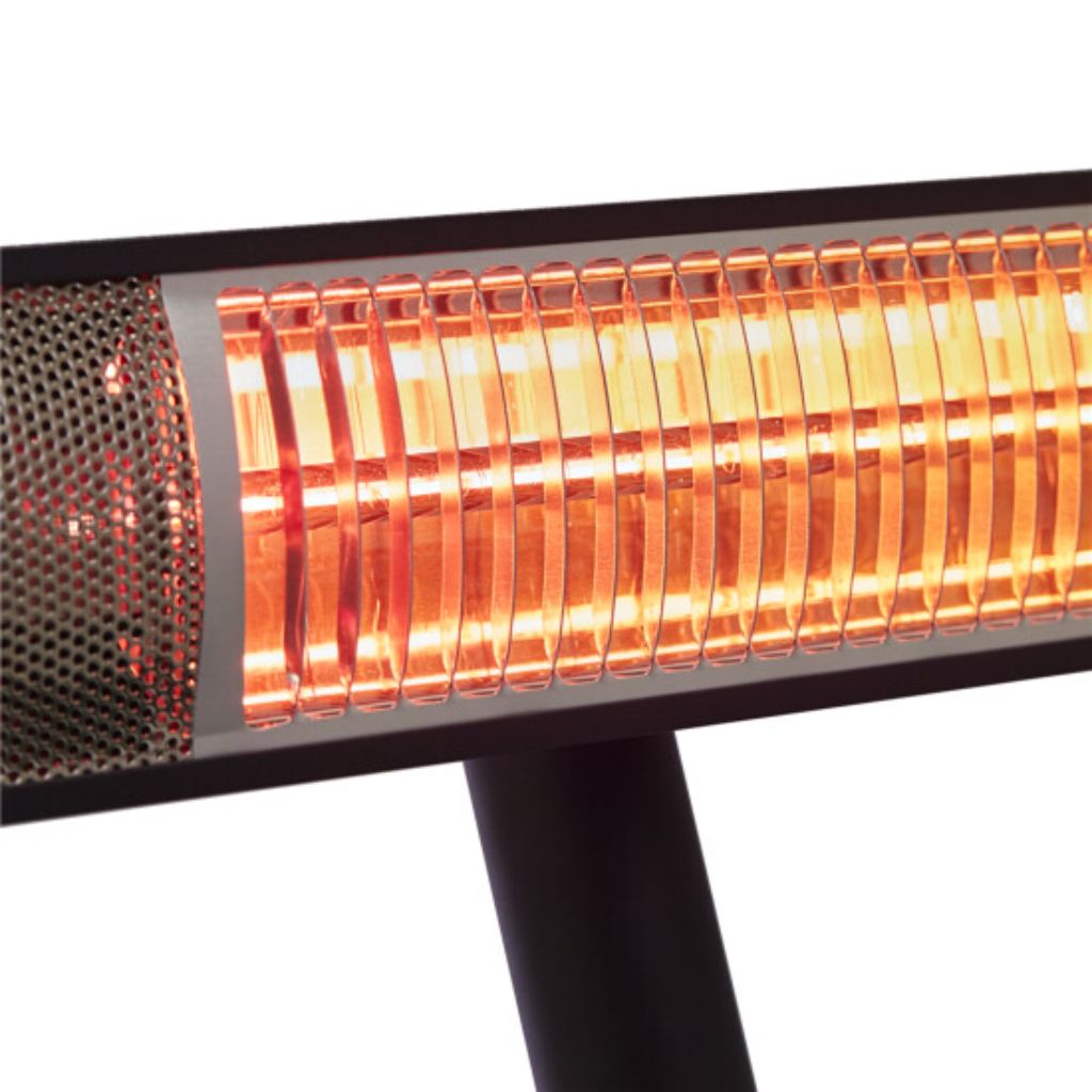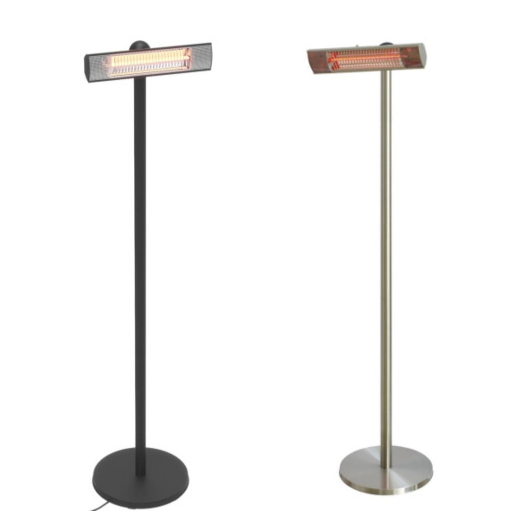 Smart og praktisk fritstående terrassevarmer på basepod stander, lige til at placere hvor man ønsker det, ude som inde.