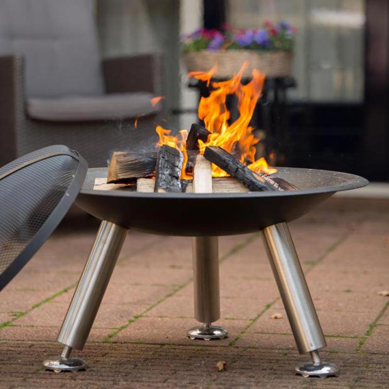 Flot og stilfuldt bålfad i farvekombinationen sort og stål.