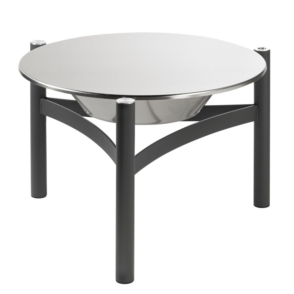 Låget i rustfrit stål giver mulighed for nemt, at slukke for bålstedet. Med låget kan bålstedet bruges som bord.