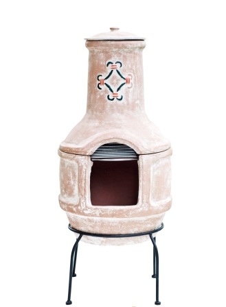 Stor todelt pejs med låg til toppen som beskytter mod regn.