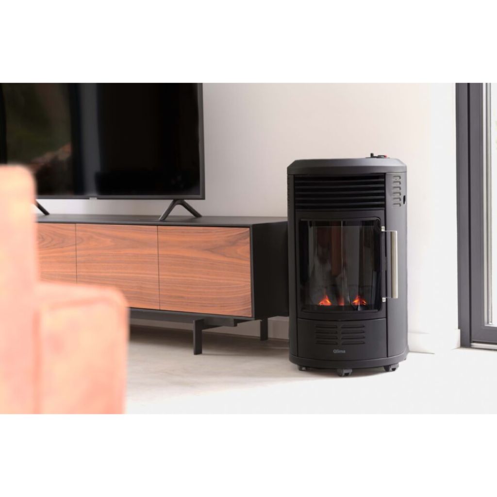 Denne gasvarmeovn fra Danske Qlima med illusionen af glødende kul er en flot og stilfuld løsning som en ekstra varmekilde.
