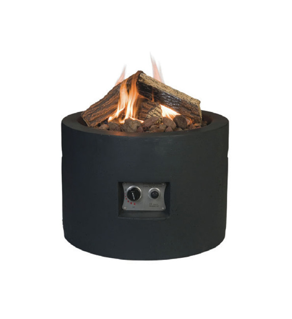 Rundt Happy Cocoon loungebord med pejs i sort.