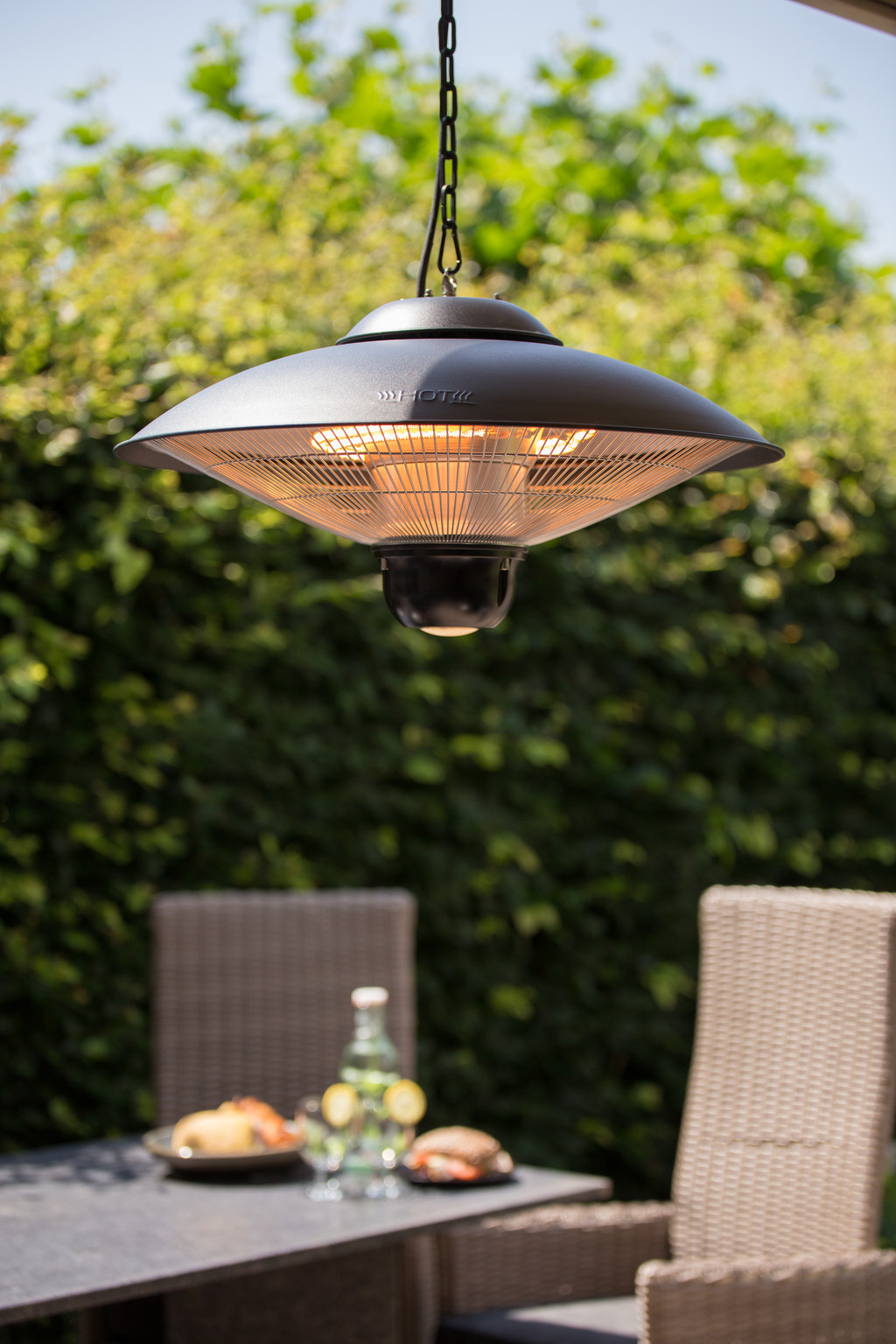 Varmelampen fungerer samtidig som en ekstra lyskilde og som et smukt samlingspunkt.